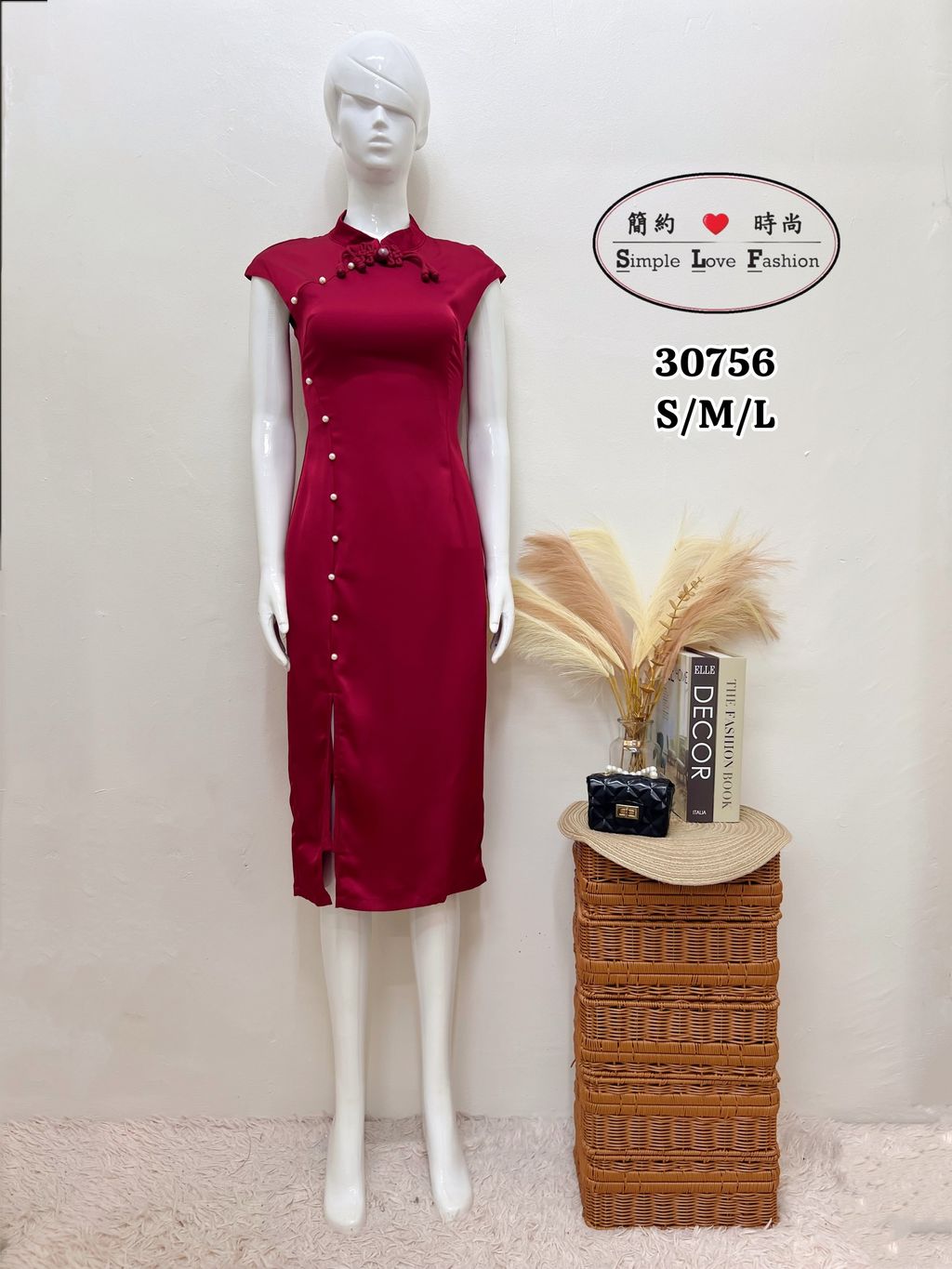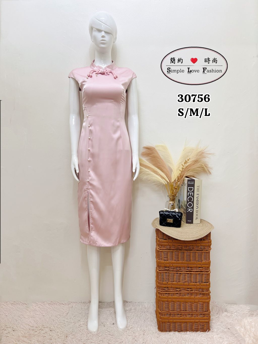 Women's Cheongsam Dress Sleeveless Satin 30756