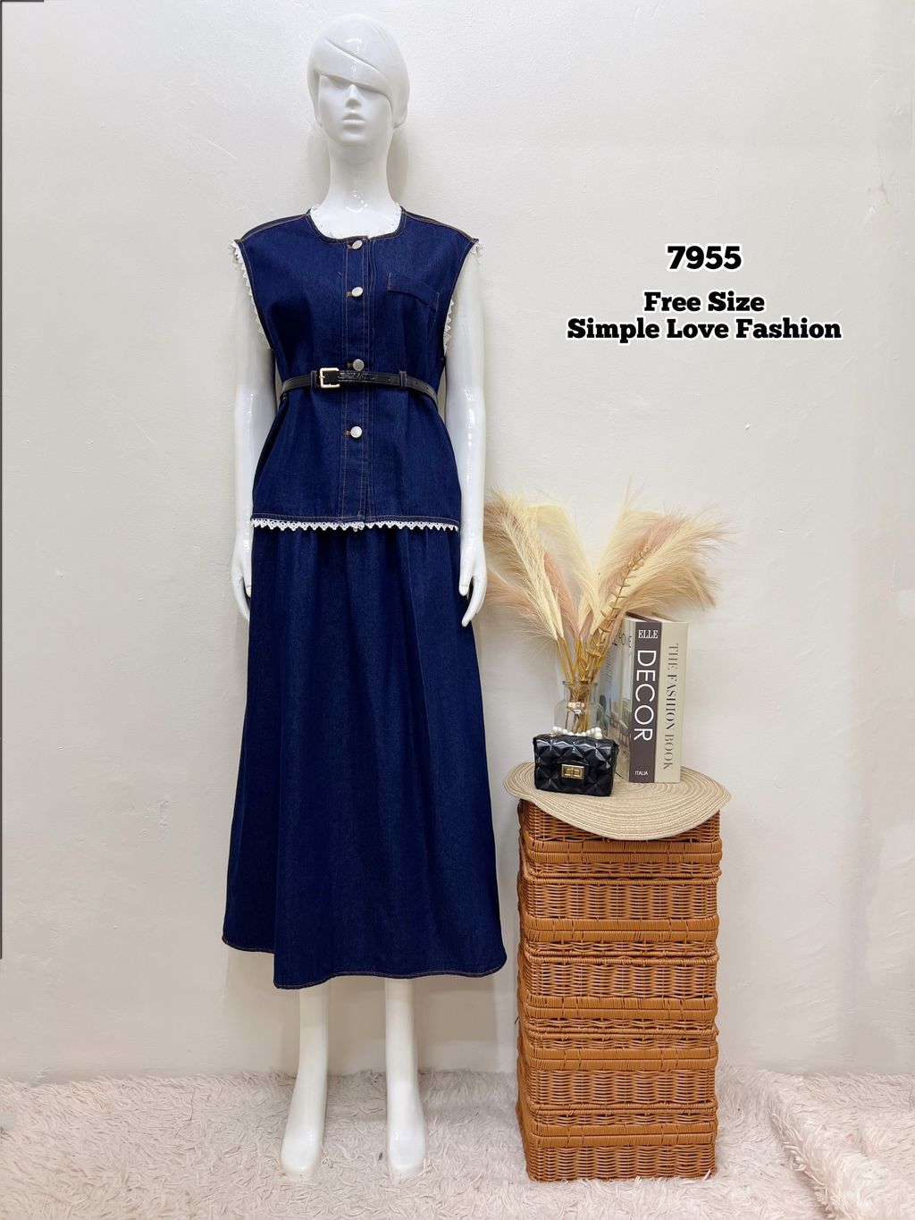 Elegant Set 2 Pcs Sleeveless Blouse + Long Skirt 7955