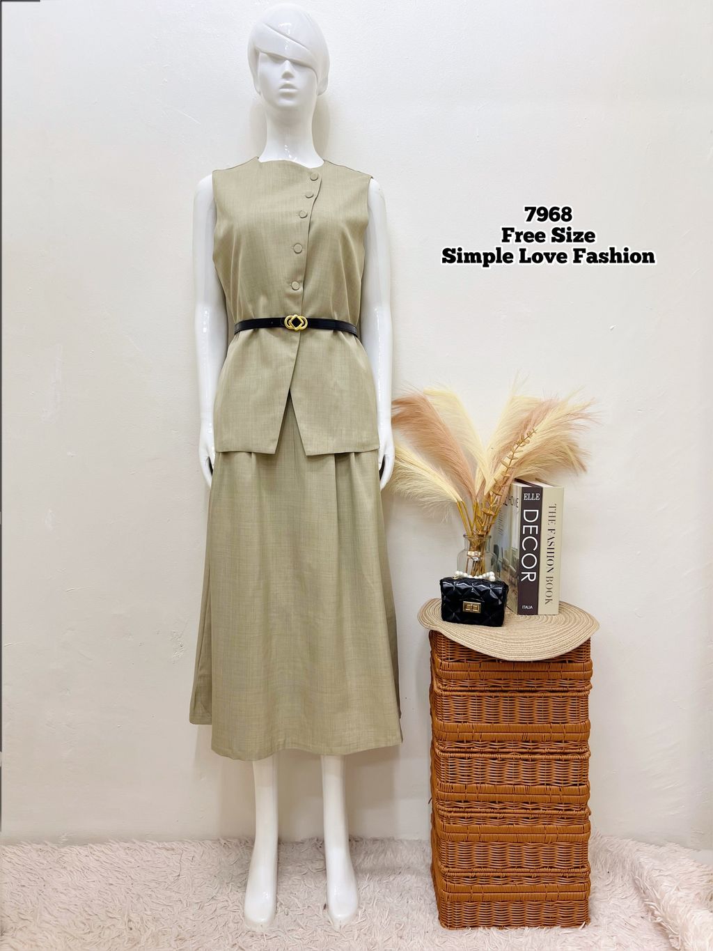 Set 2PCS Sleeveless Blouse With Skirt 7968