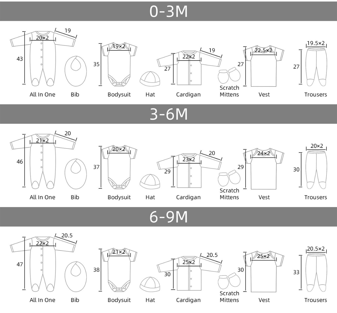 Size: 0-3M, 3-6M, 6-9M