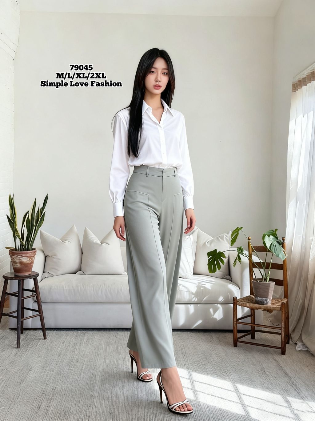 Elegant Women Long Pants With Belt 79045