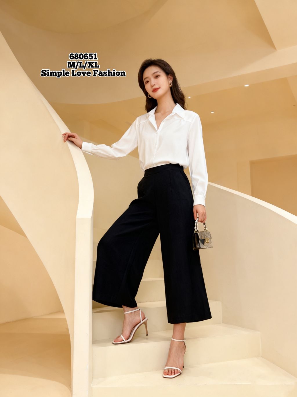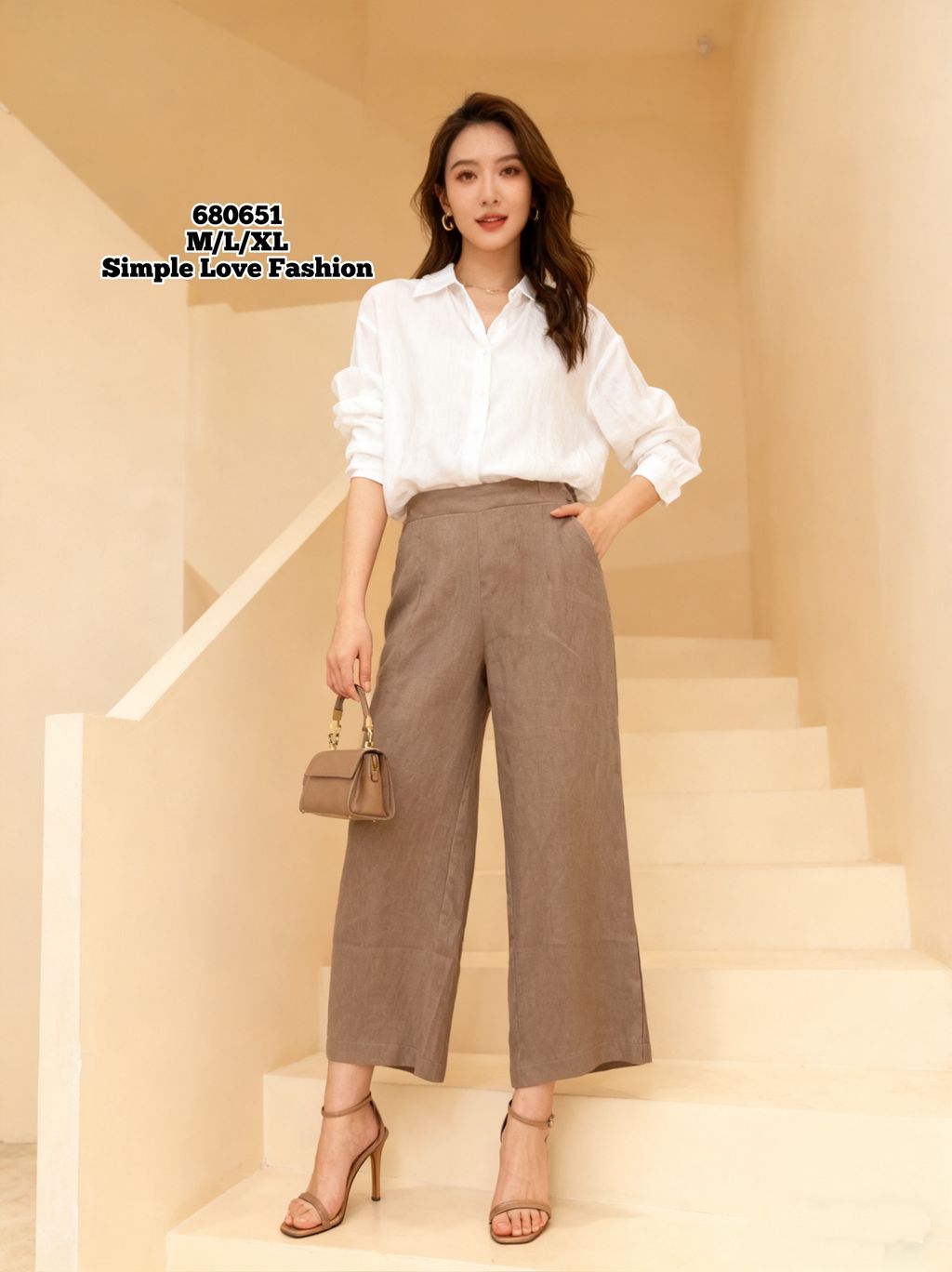 Women's Long Pants Cotton Elastic Waist Straight Cut 680651