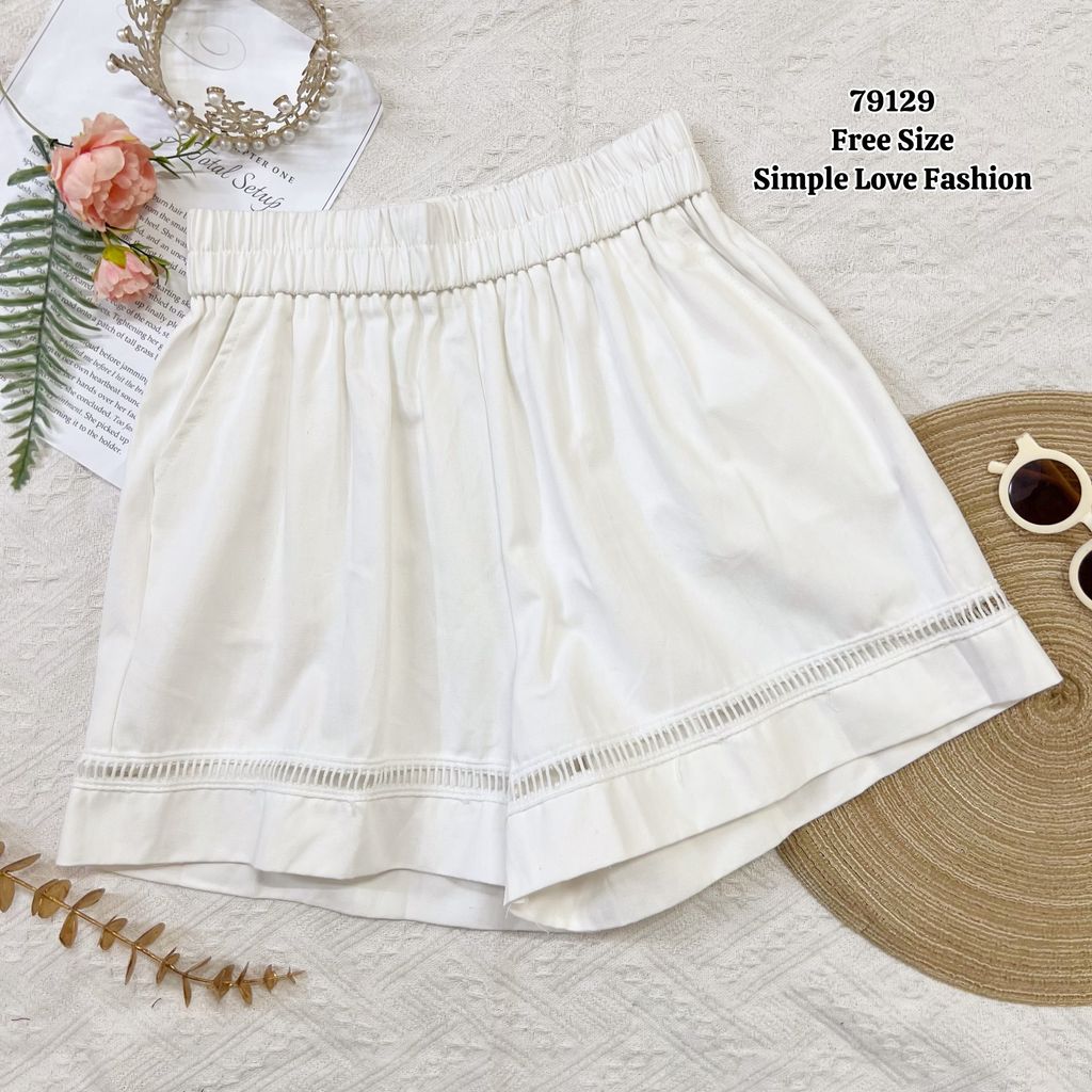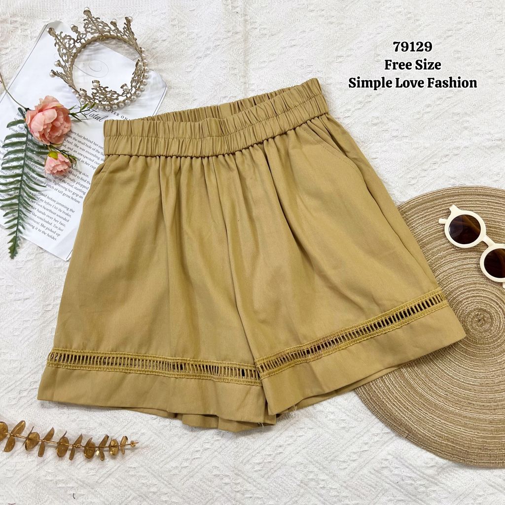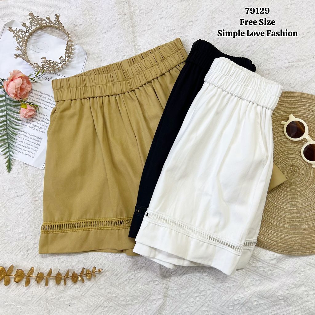Women Short Pant Elastic Waist Cotton Linen 79129