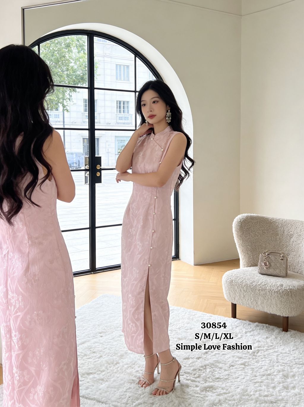 Floral Motif Design Cheongsam Dress 30854