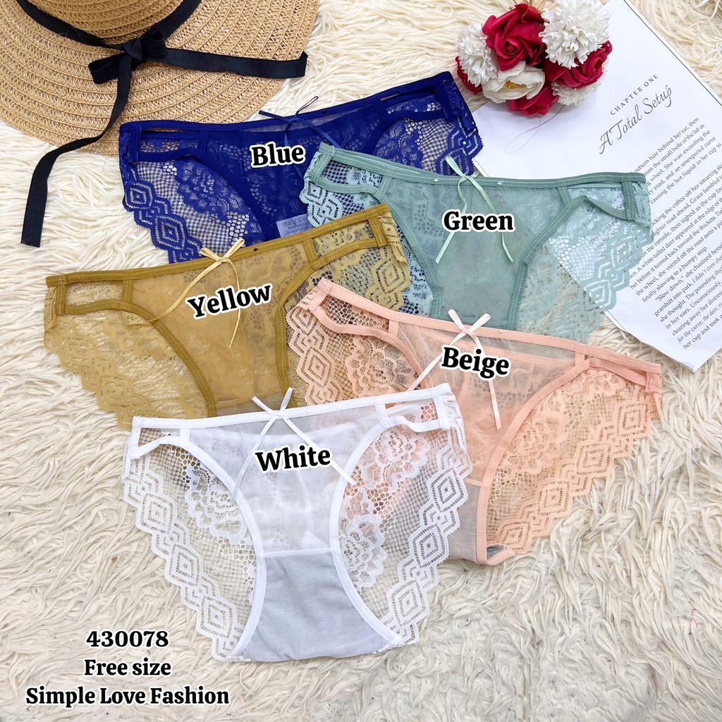 PantiesCode: 430078 Size: Free SizeColour;White,Blue,Green,Yellow,BeigeFree Size Waist: 64-86cm; Hips:- cm; Length: 25cm