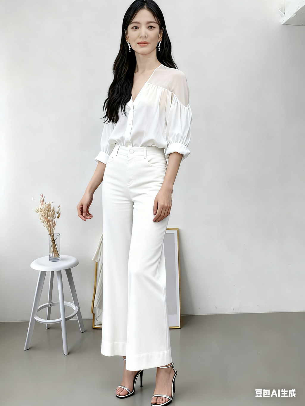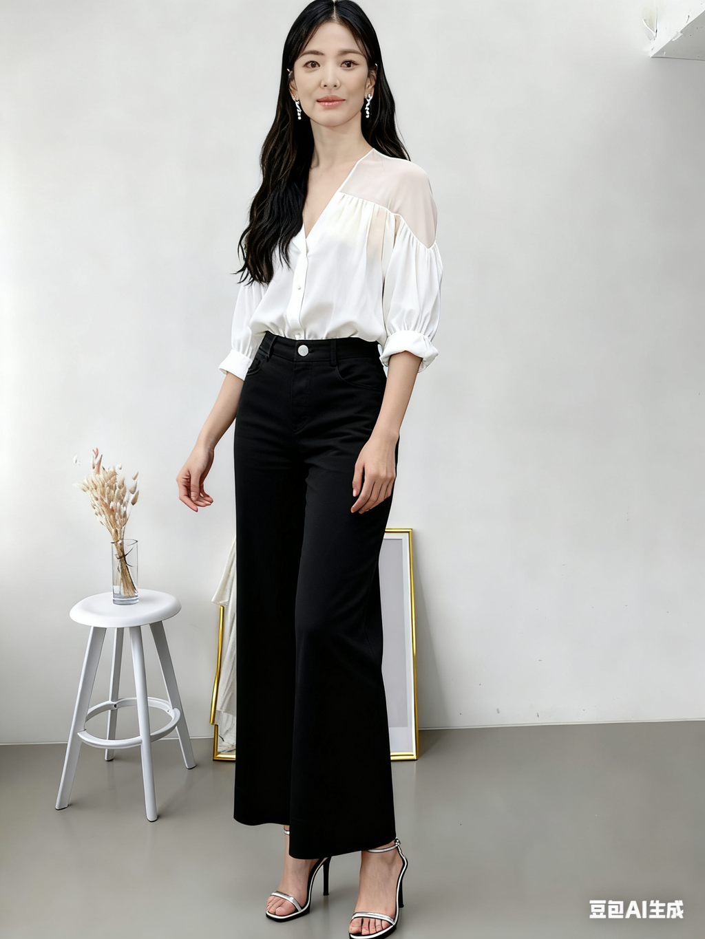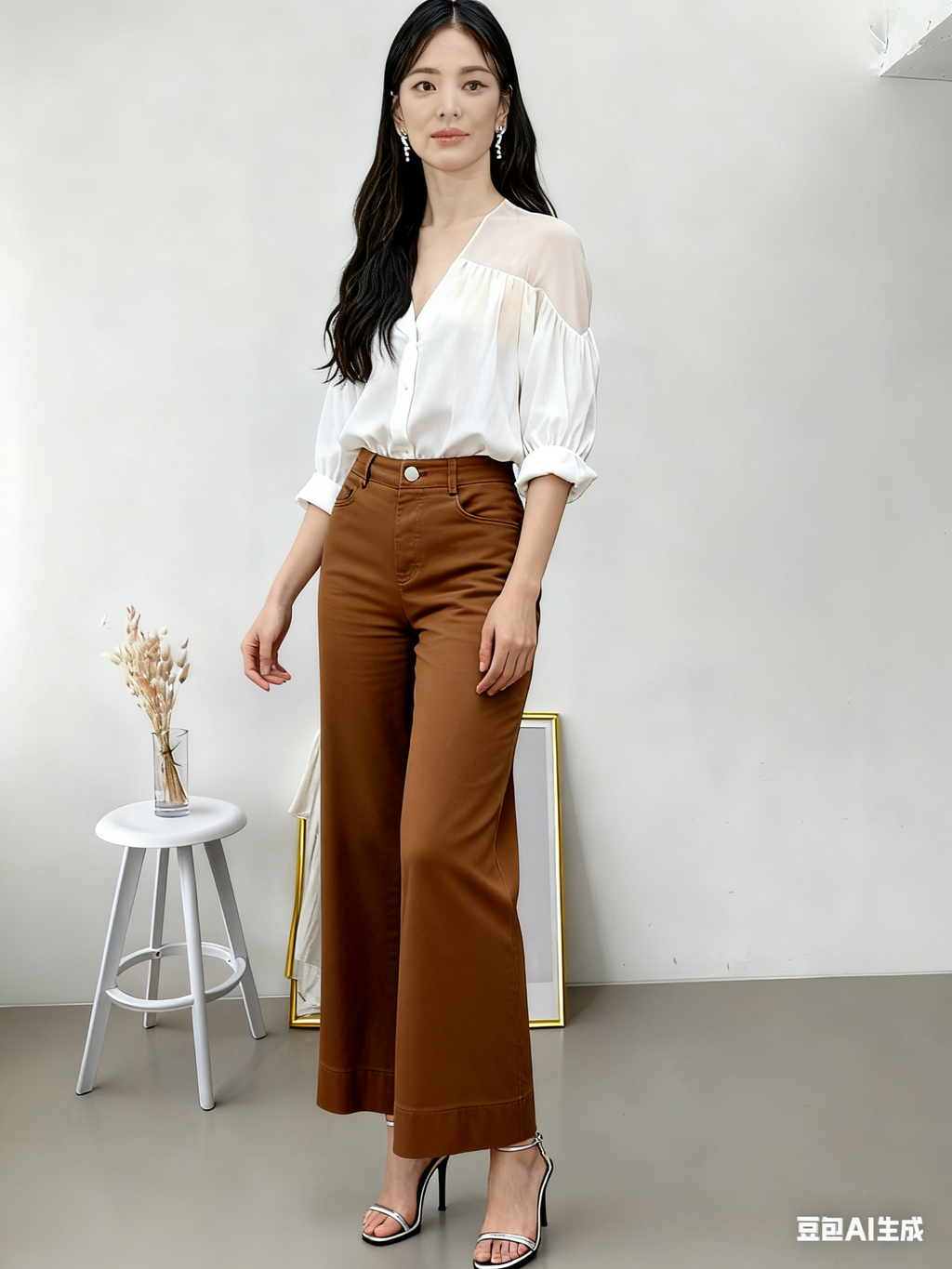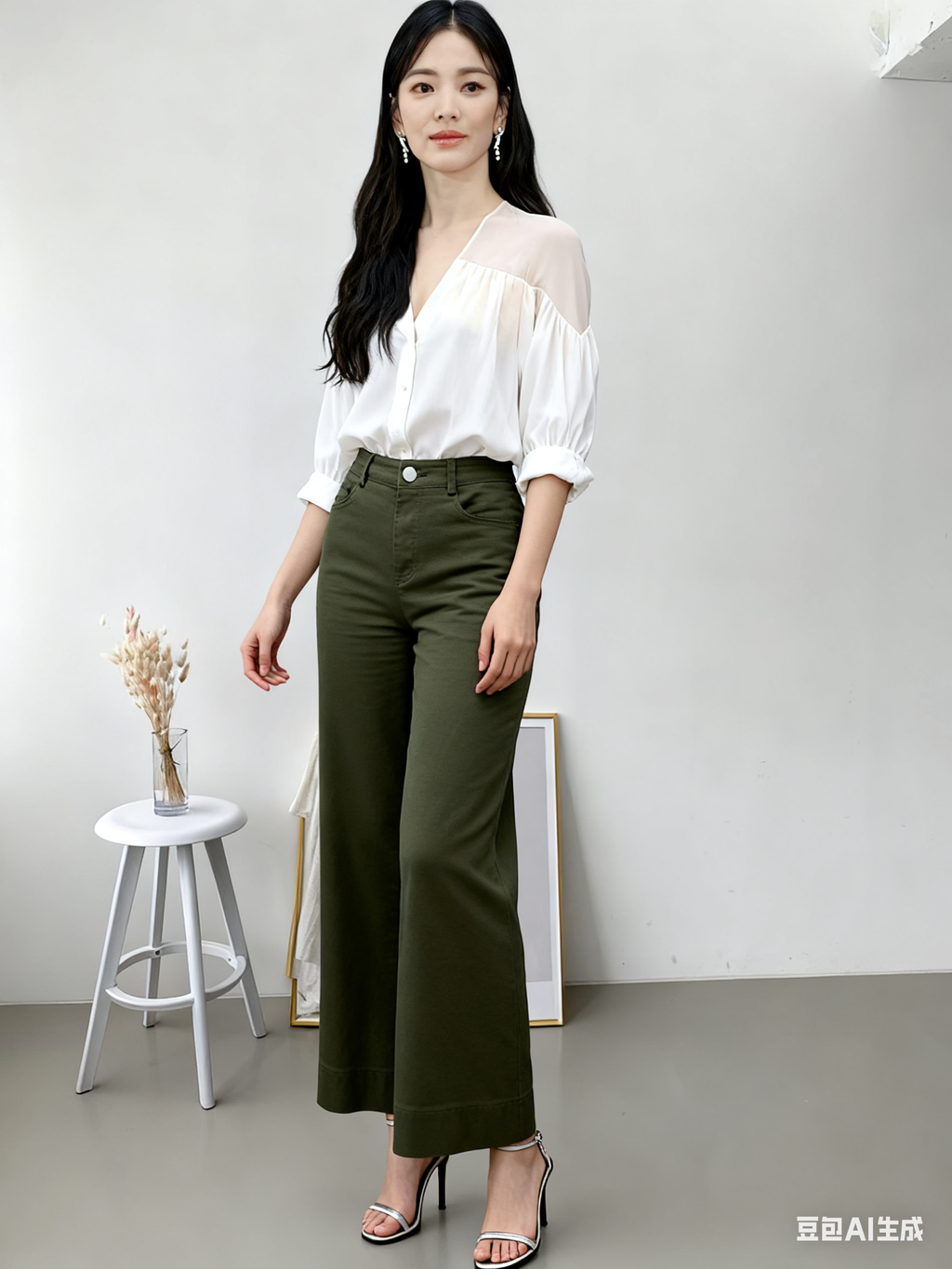 Casual Women Long Pants Cutting Straigth Elastic Waist 680623