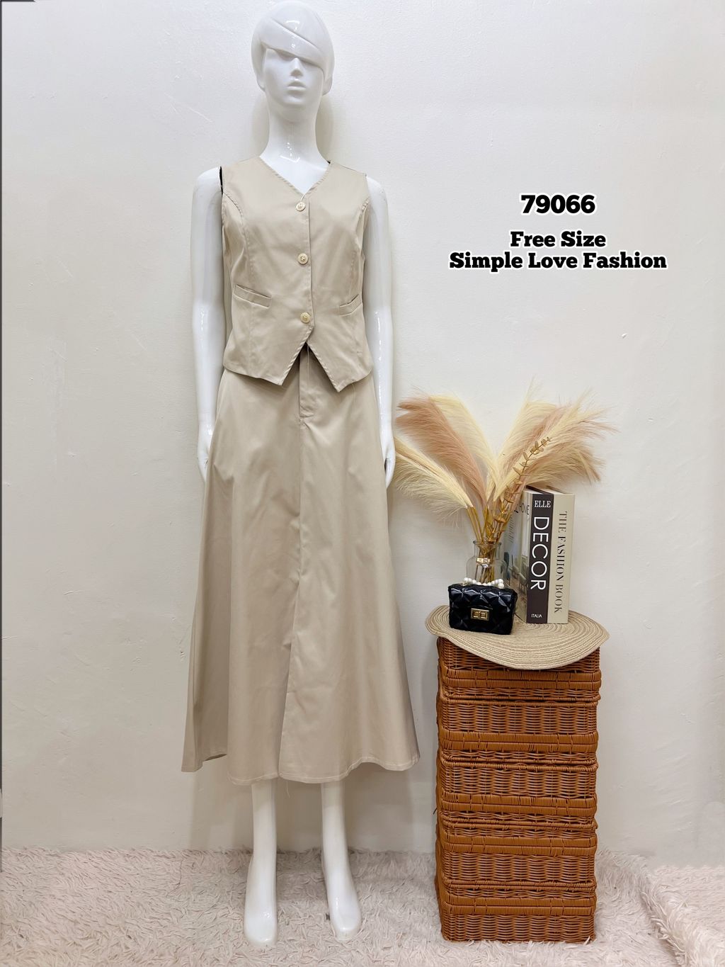 Set 2 PCS Sleeveless Blouse With Long Skirt 79066