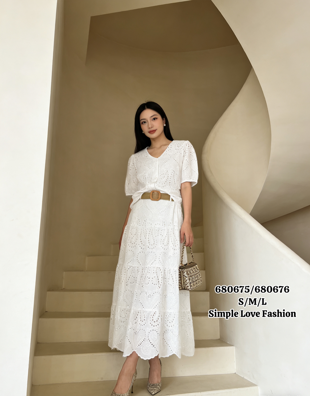 Elegant Outfit Embroidery Blouse and Long Skirt 680675 / 680676
