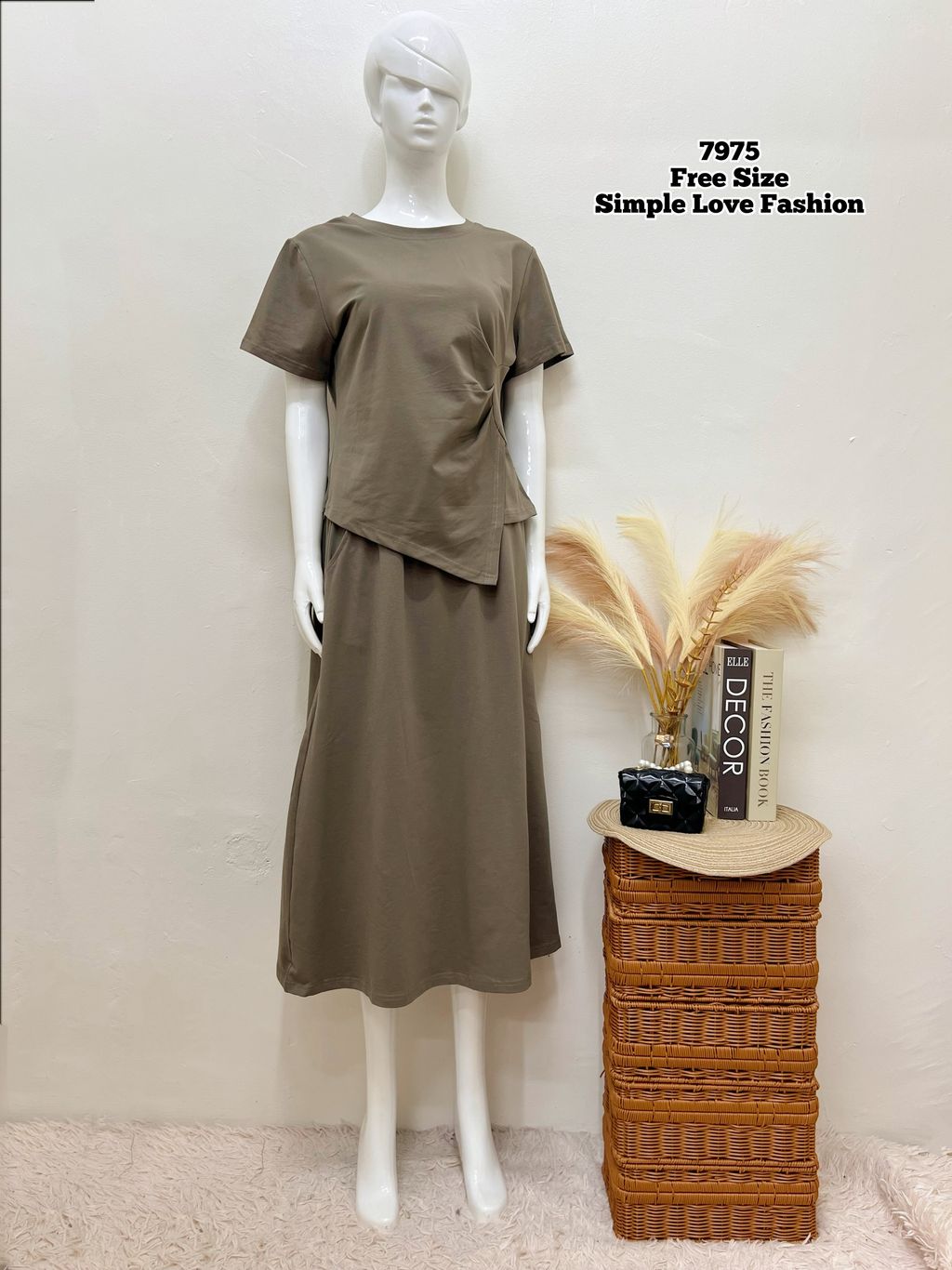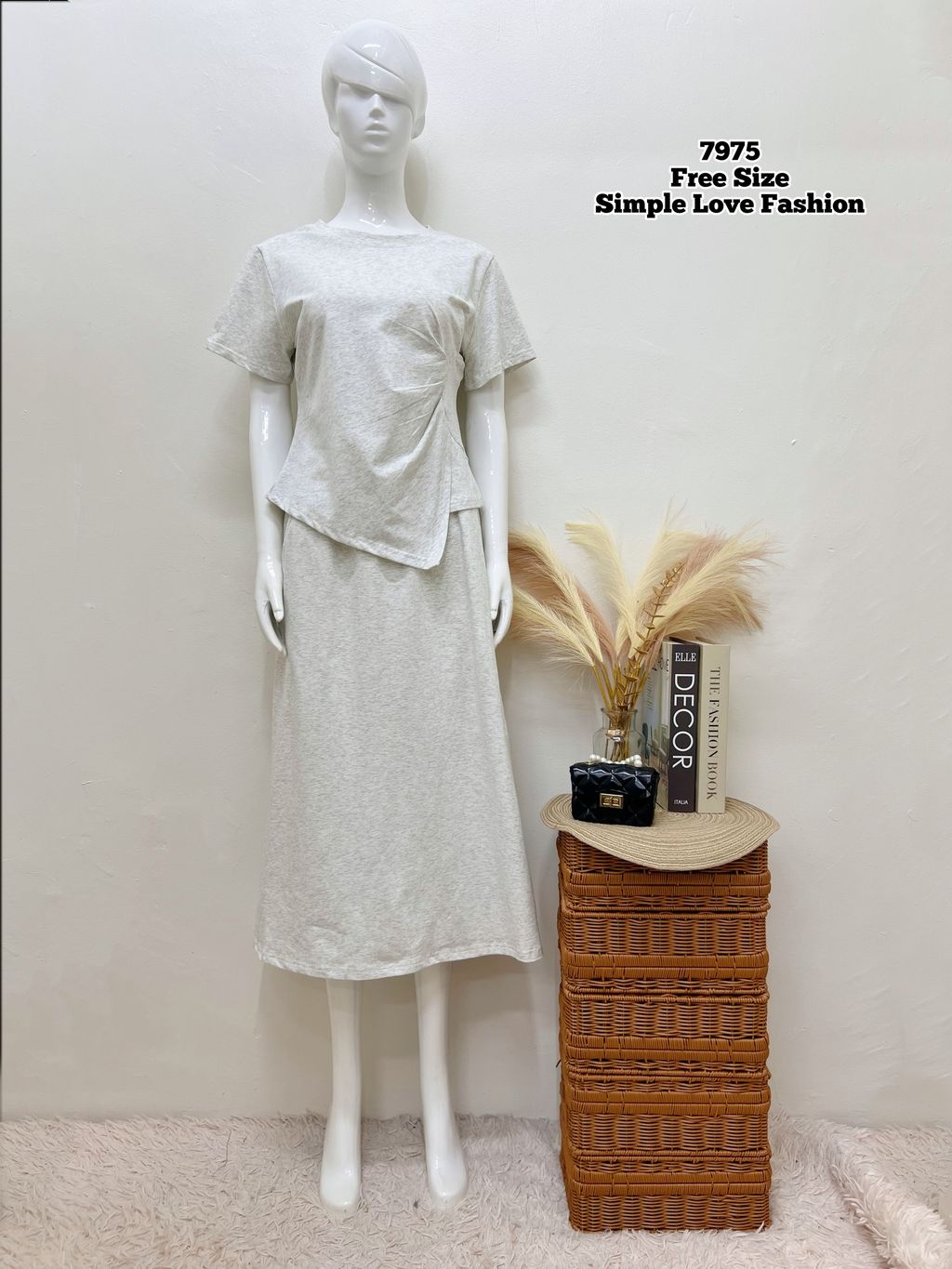Set 2pcs T-Shirt + Long Skirt Elastic Waist 7975