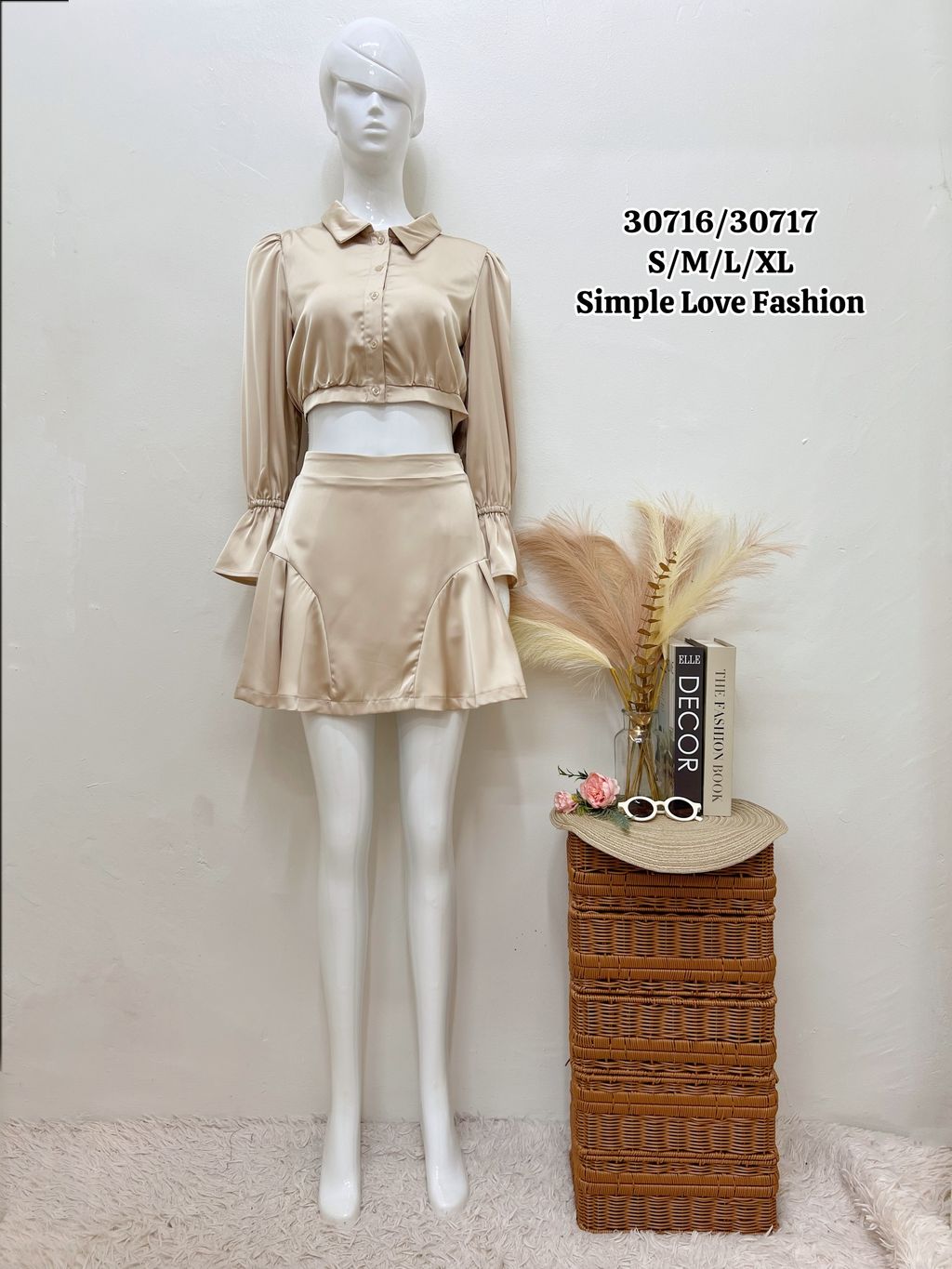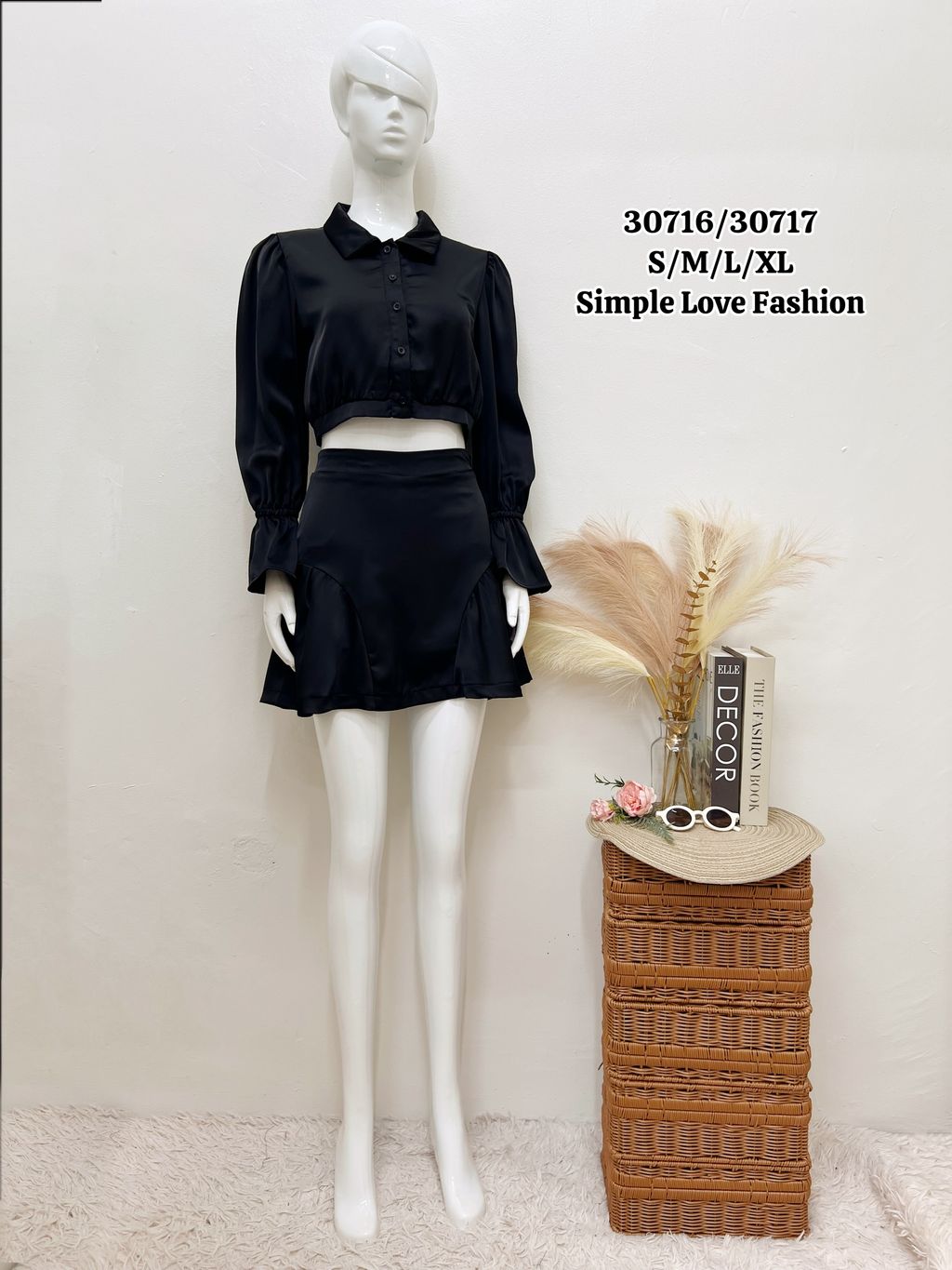 Elegant One Set Collar Blouse + Short Skirt 30716