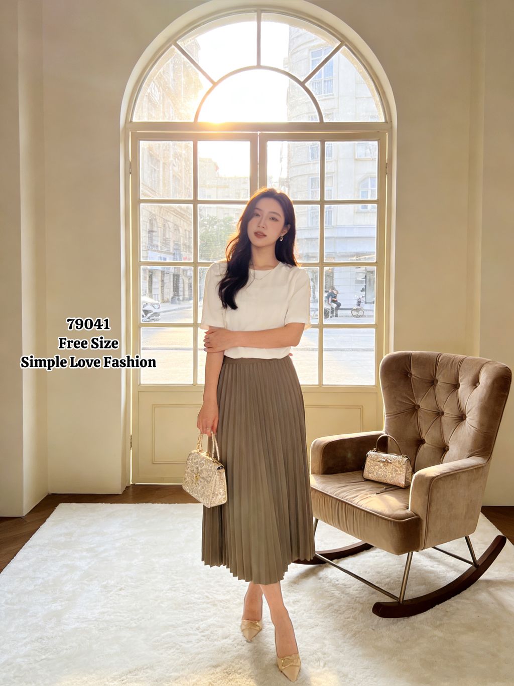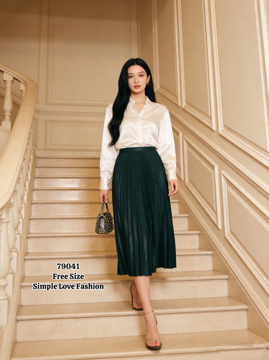 Elegant Women Long Skirt Peated Elastic Waist 79041