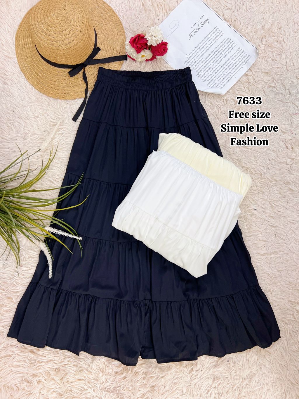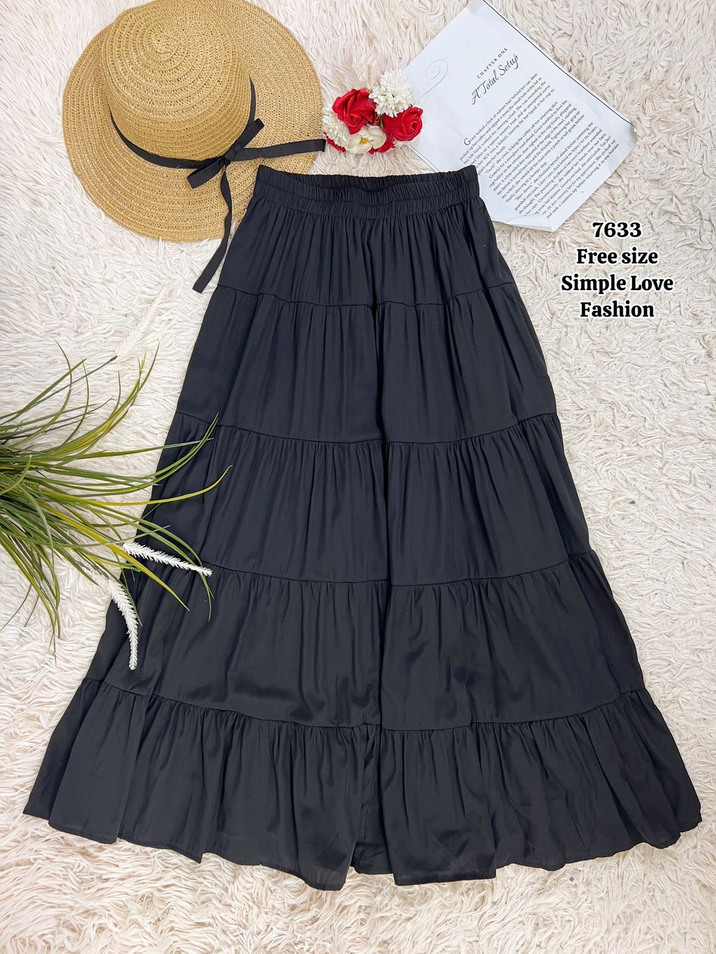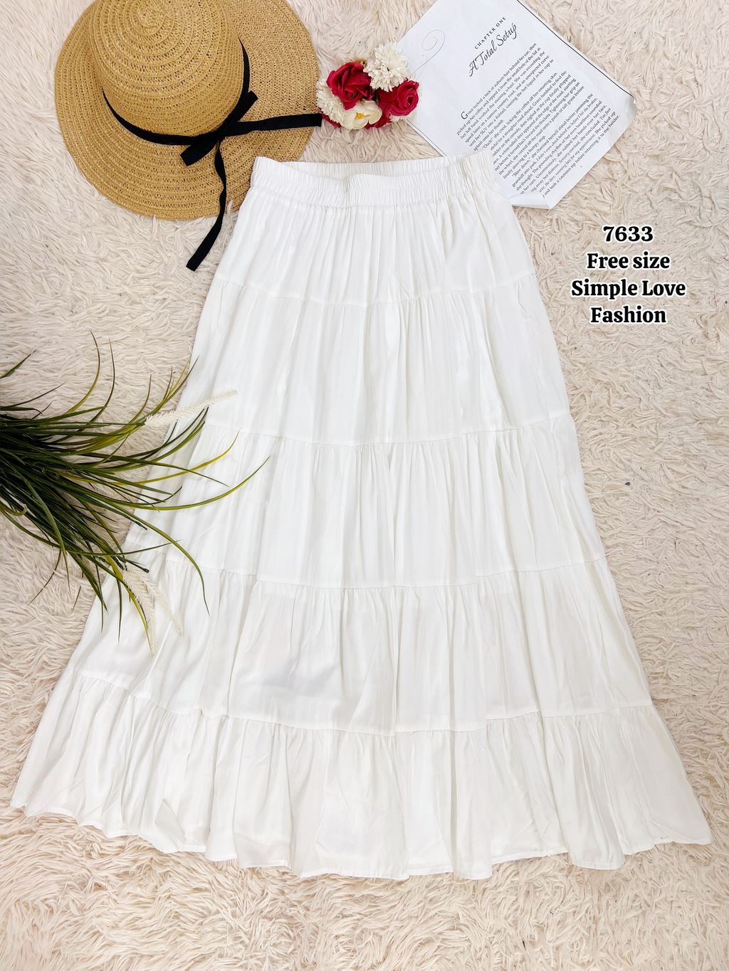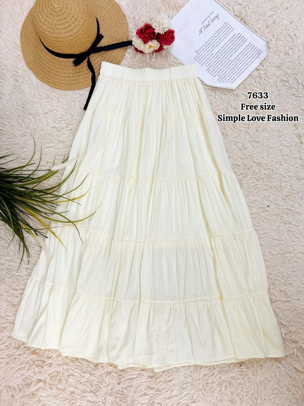 Long SkirtCode: 7633Size: Free SizeColour; White,Beige,BlackFree Size Waist:66-104 cm; Hips:- cm; Length:87 cm