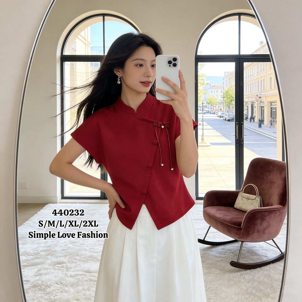Chinese Style T-Shirt V-Neck 440232
