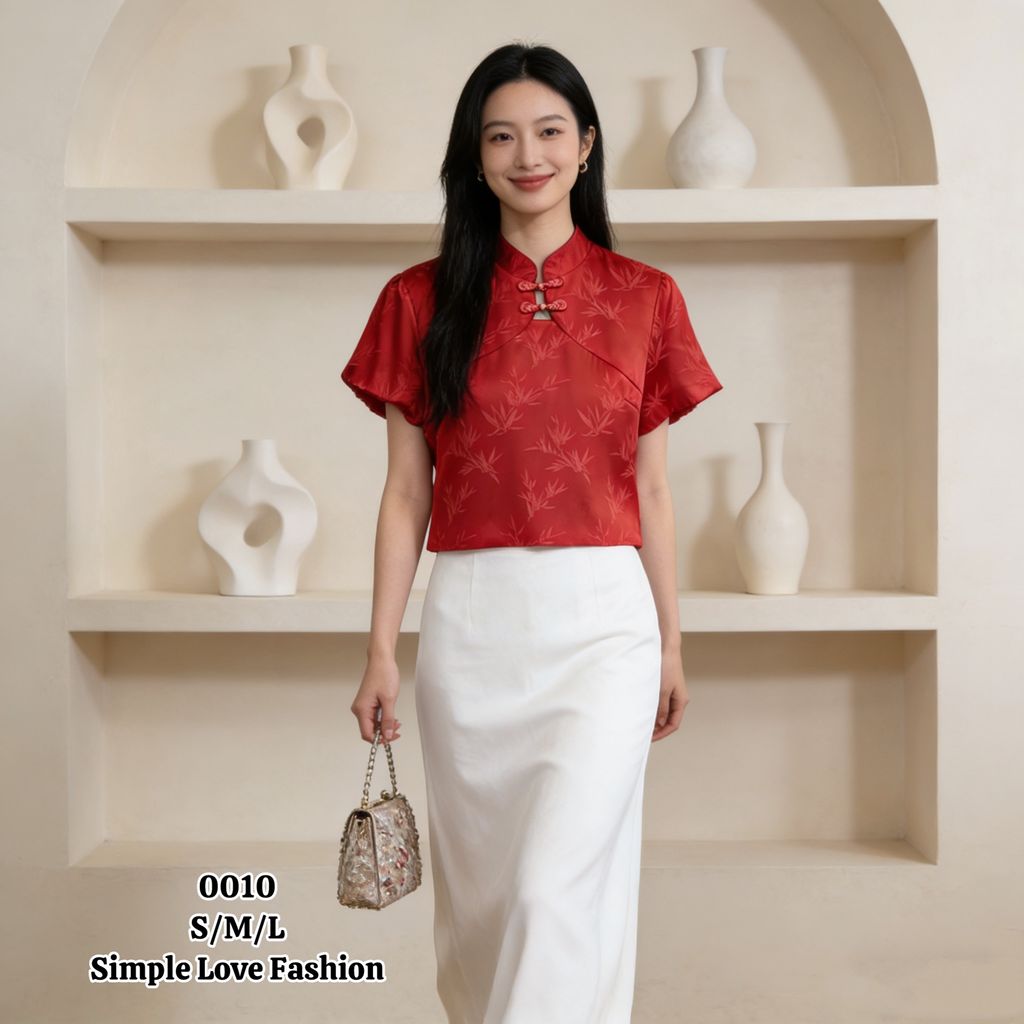 Blouse Chinese Style Puff Sleeve 0010