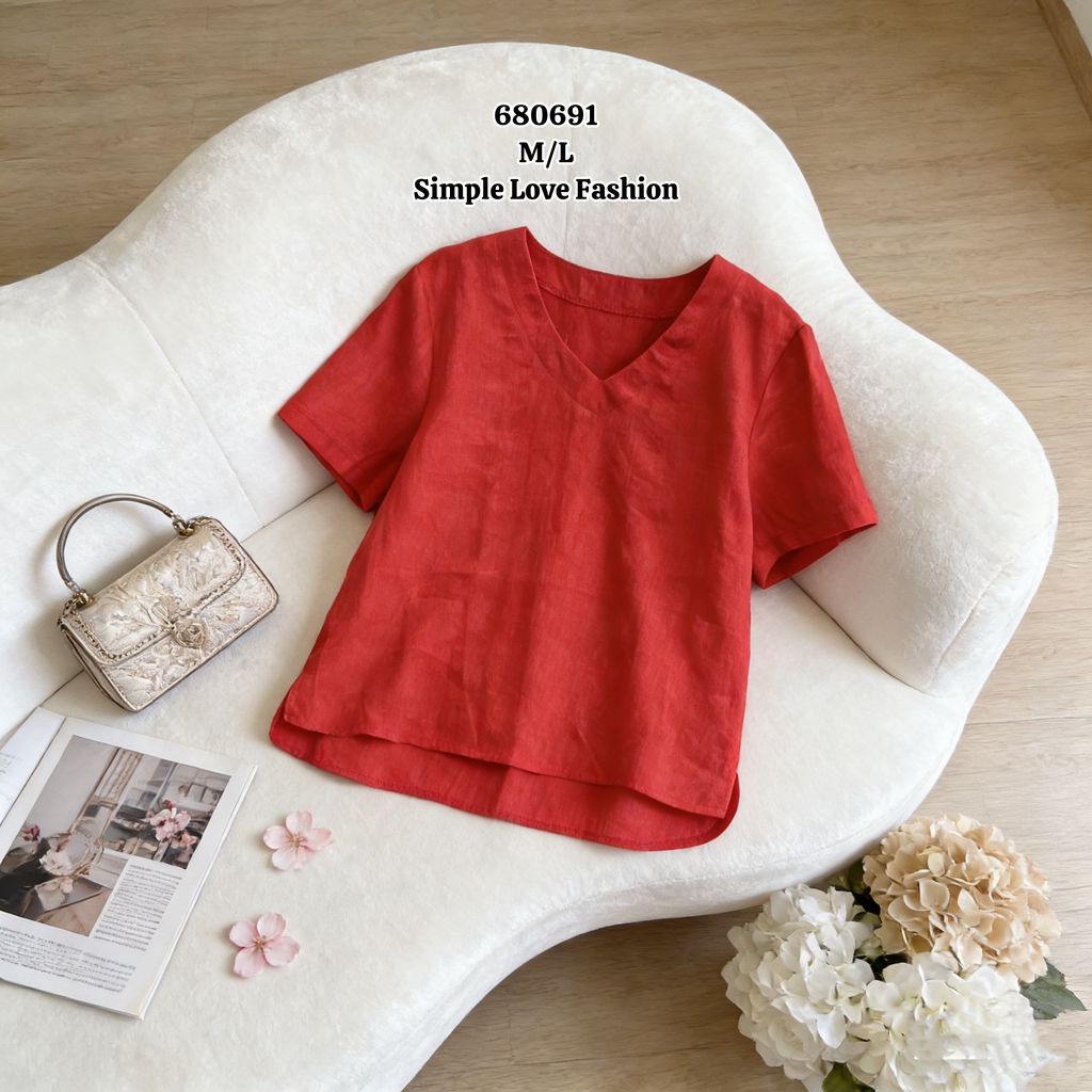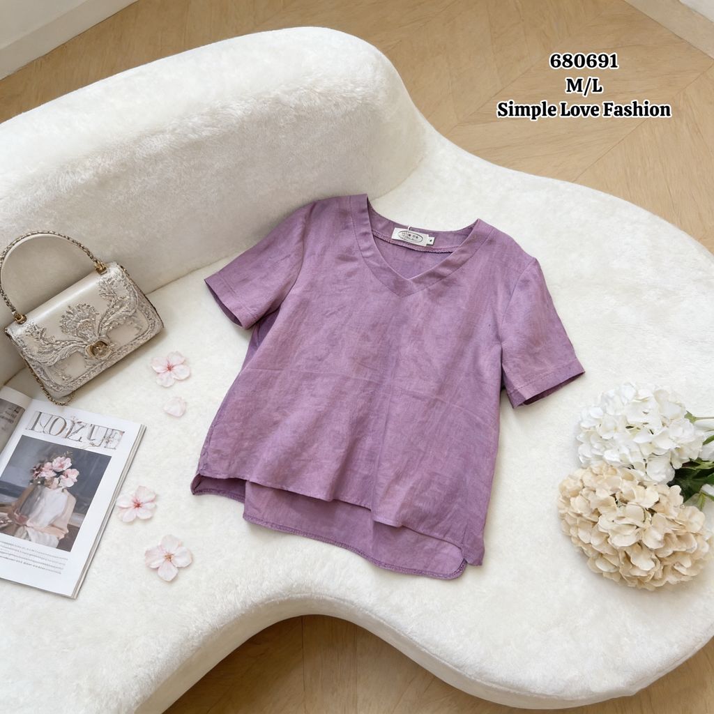 Round Neck Cotton Blouse 680691