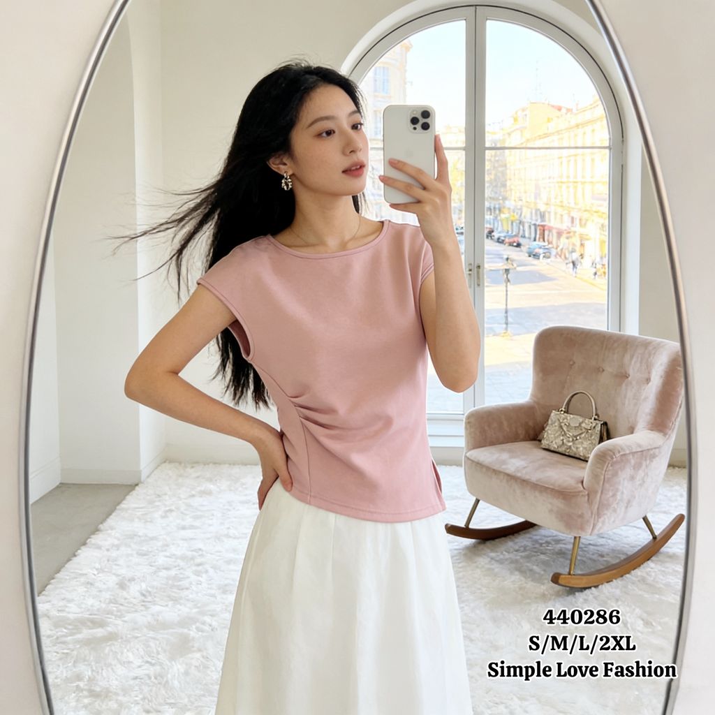 Simple T-Shirt Women Round Neck 440252