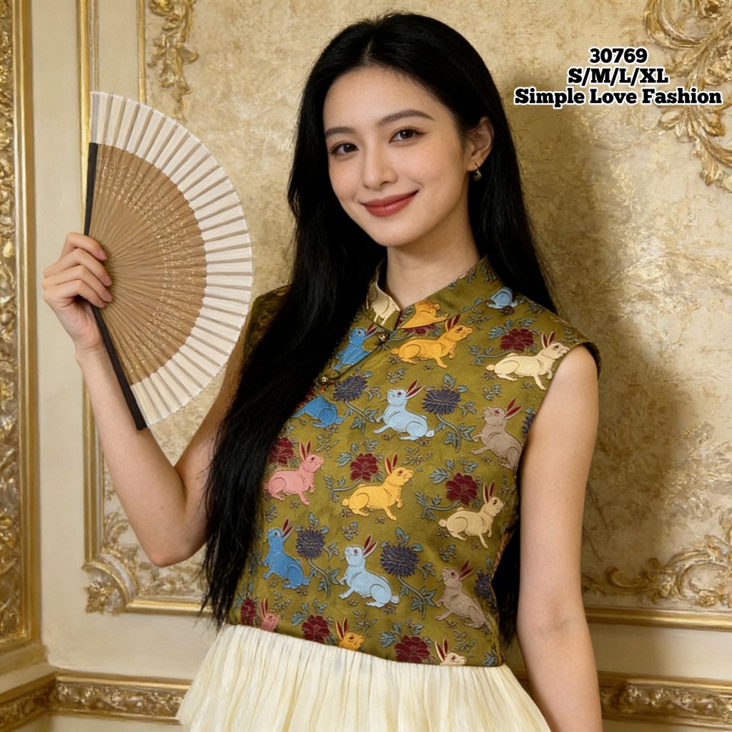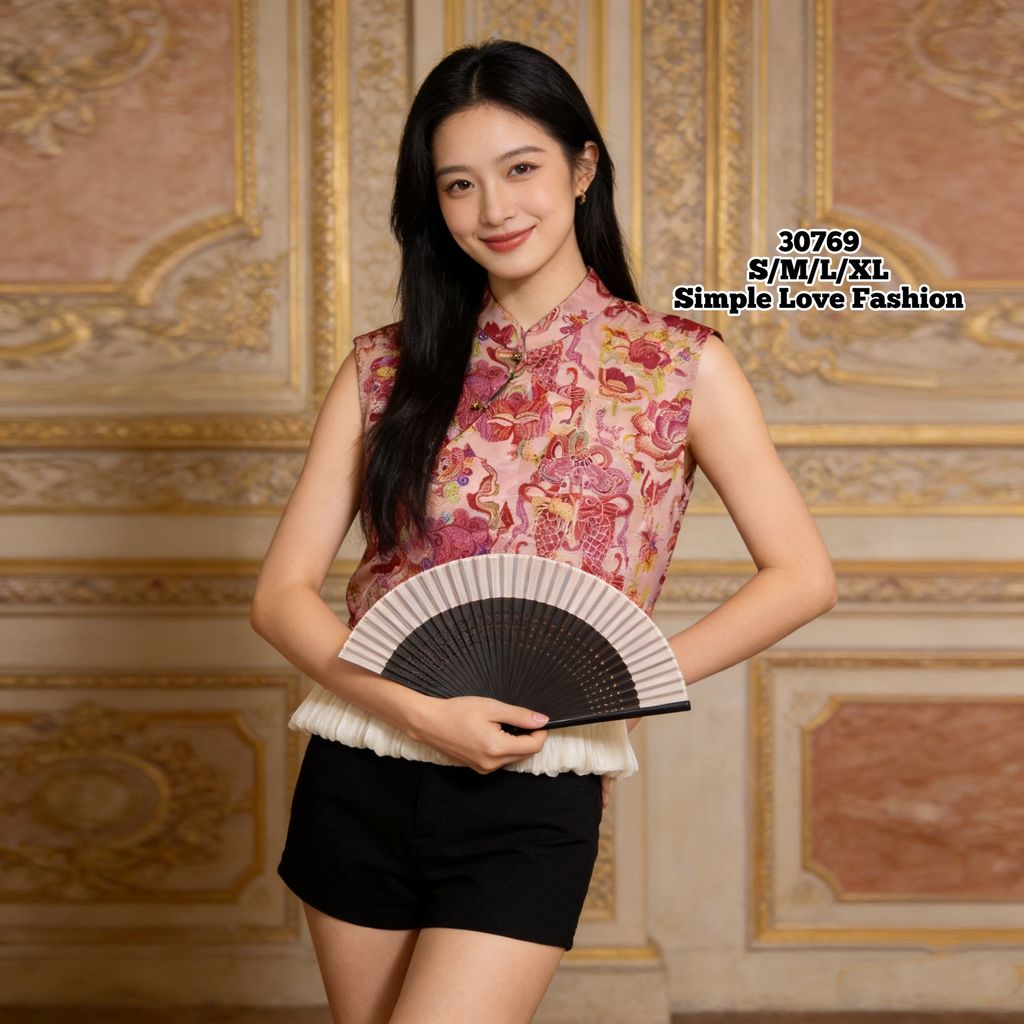 Sleeveles Women CNY Blouse Printed Design 30769